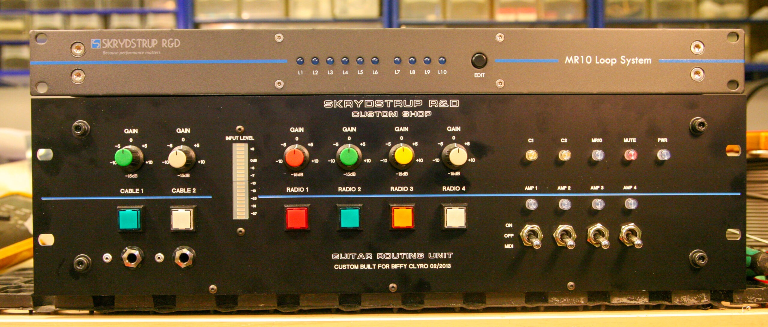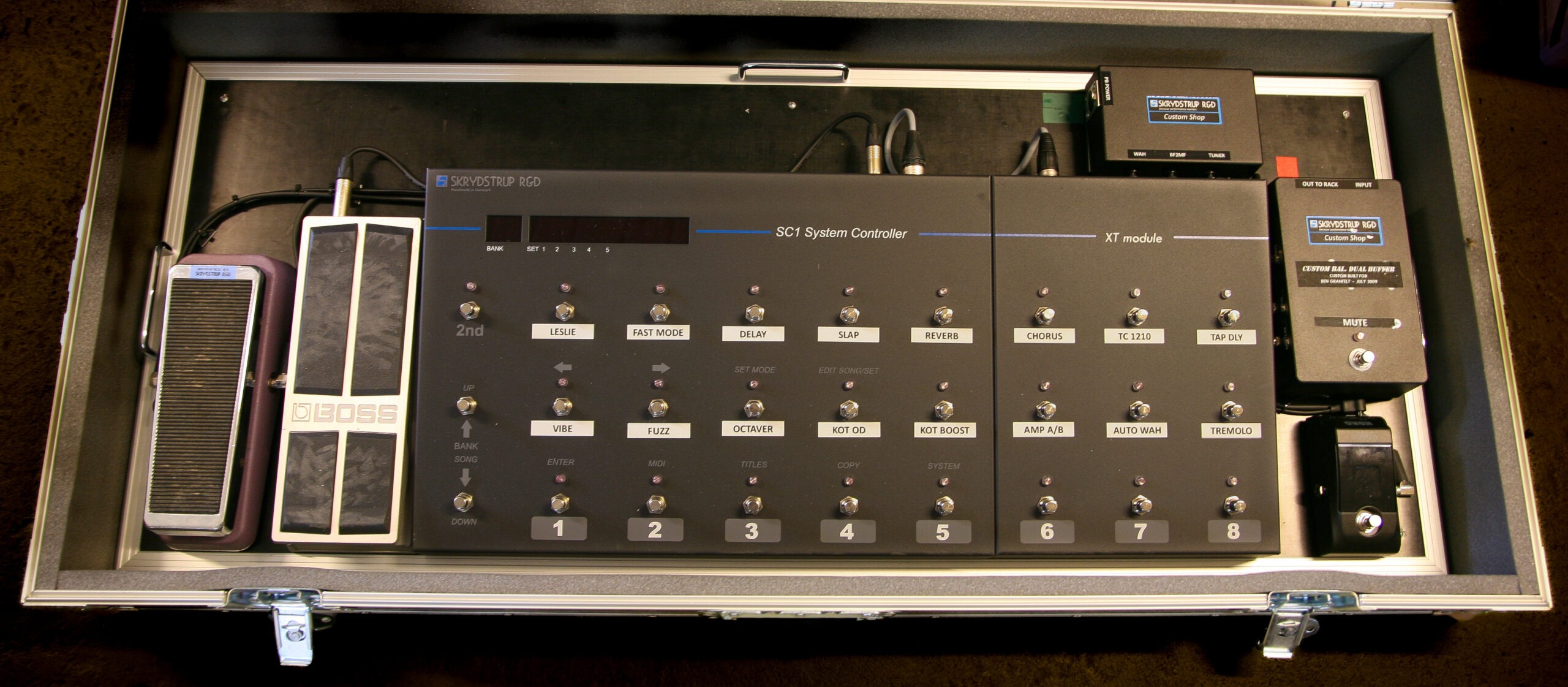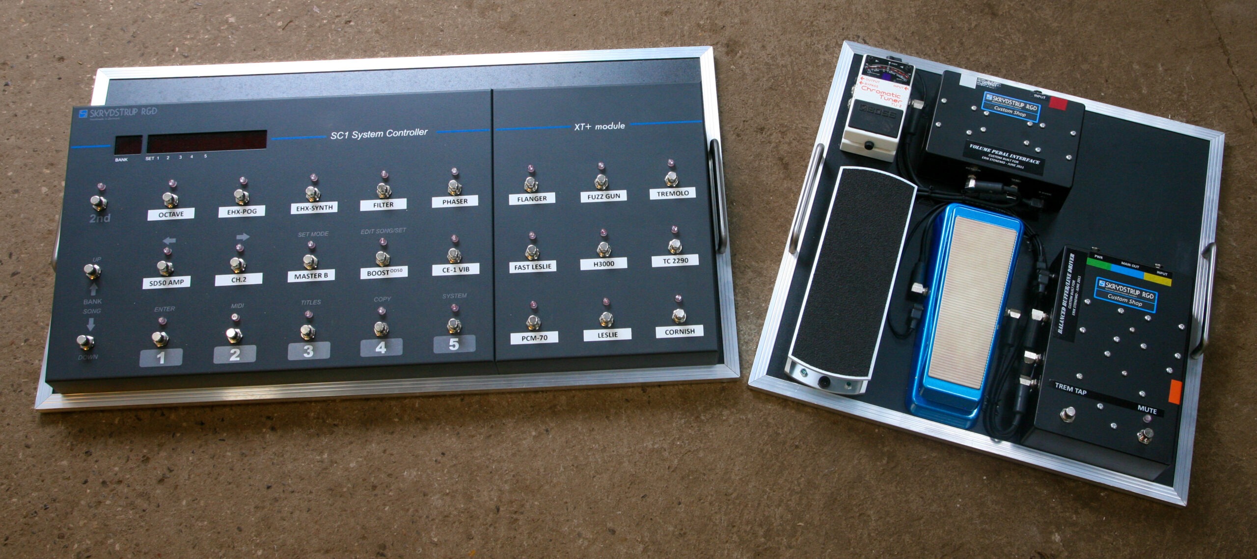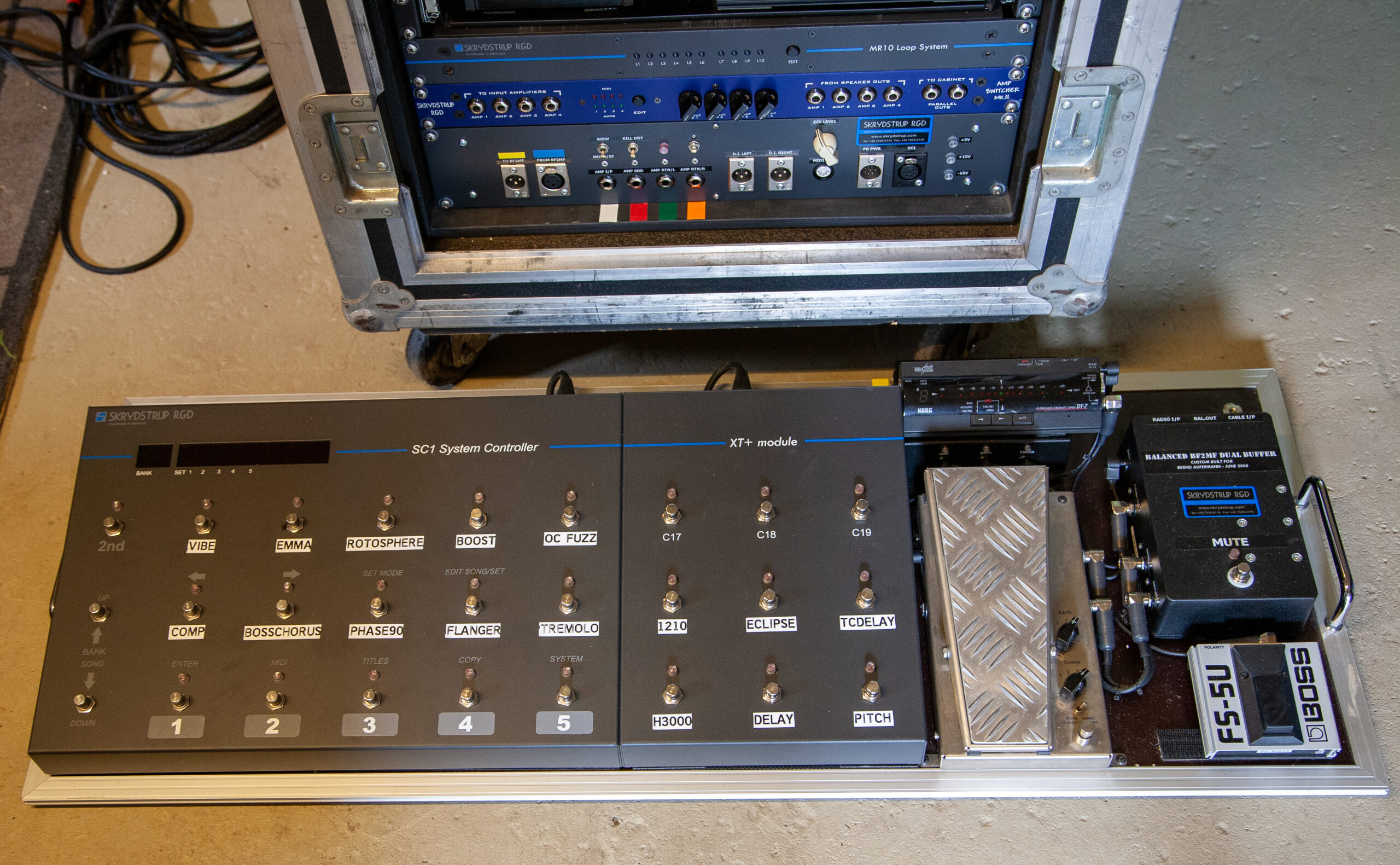 The system includes 2 x MR10 Loop Systems, the SC1 Midi Foot Controller with the EX2 extension module, and a number of Custom Shop units that I designed in collaboration with Phil Taylor.