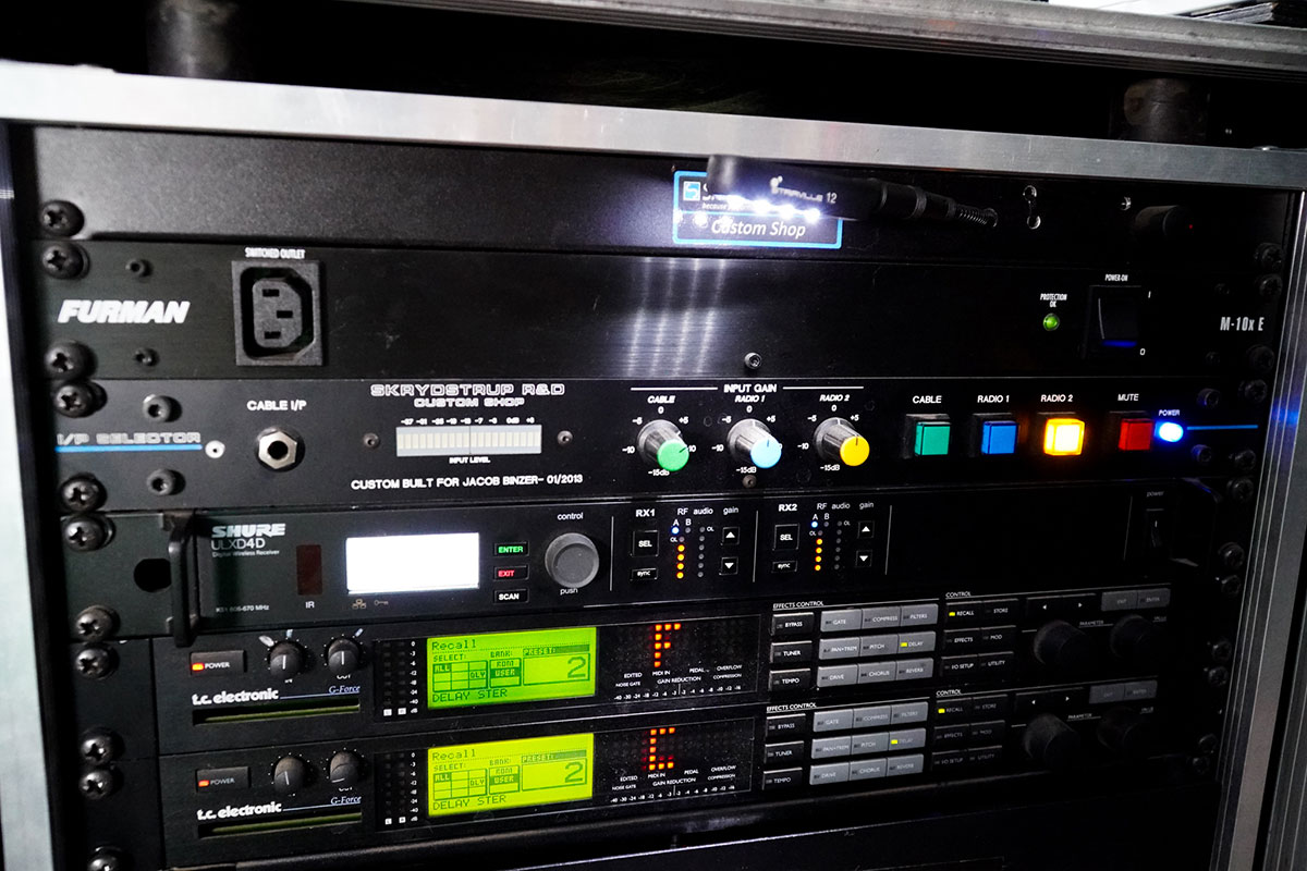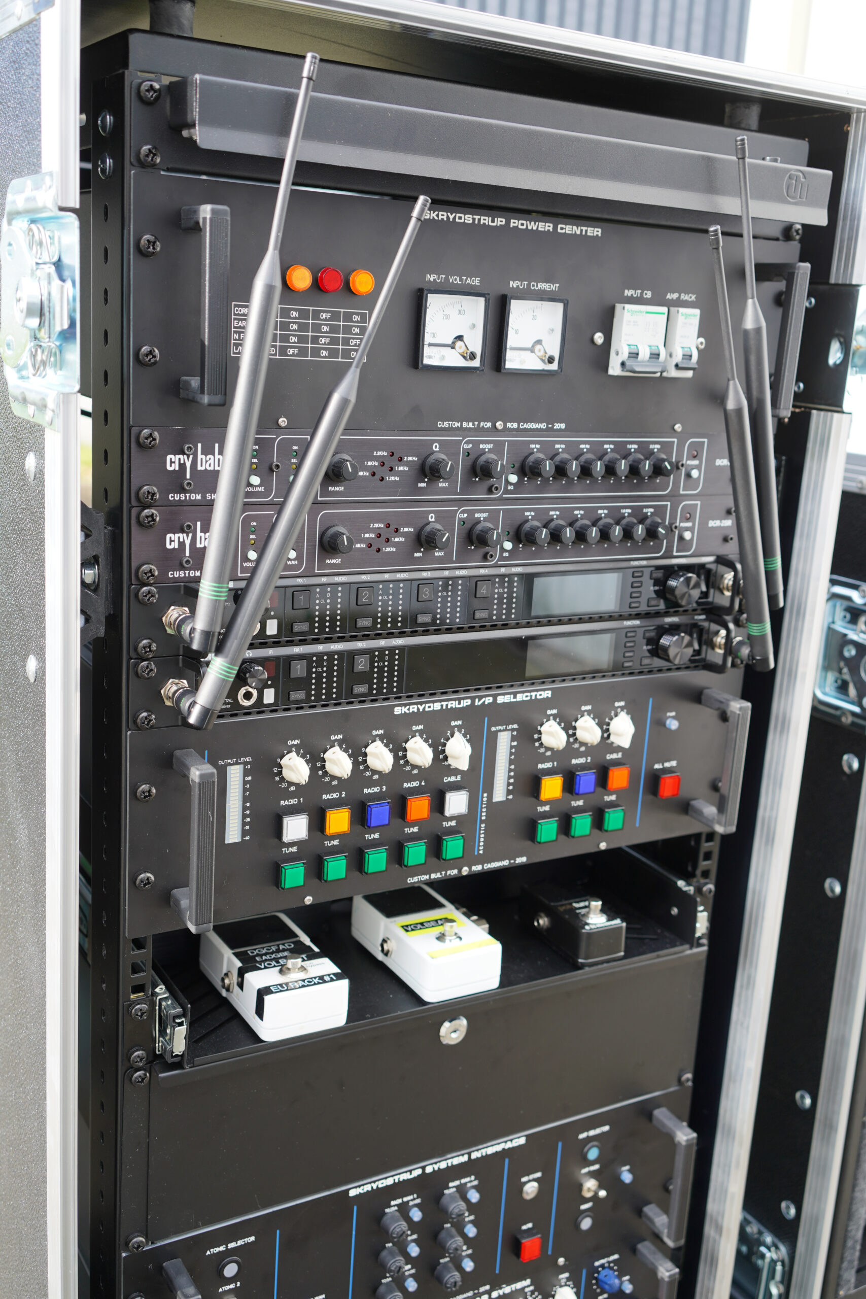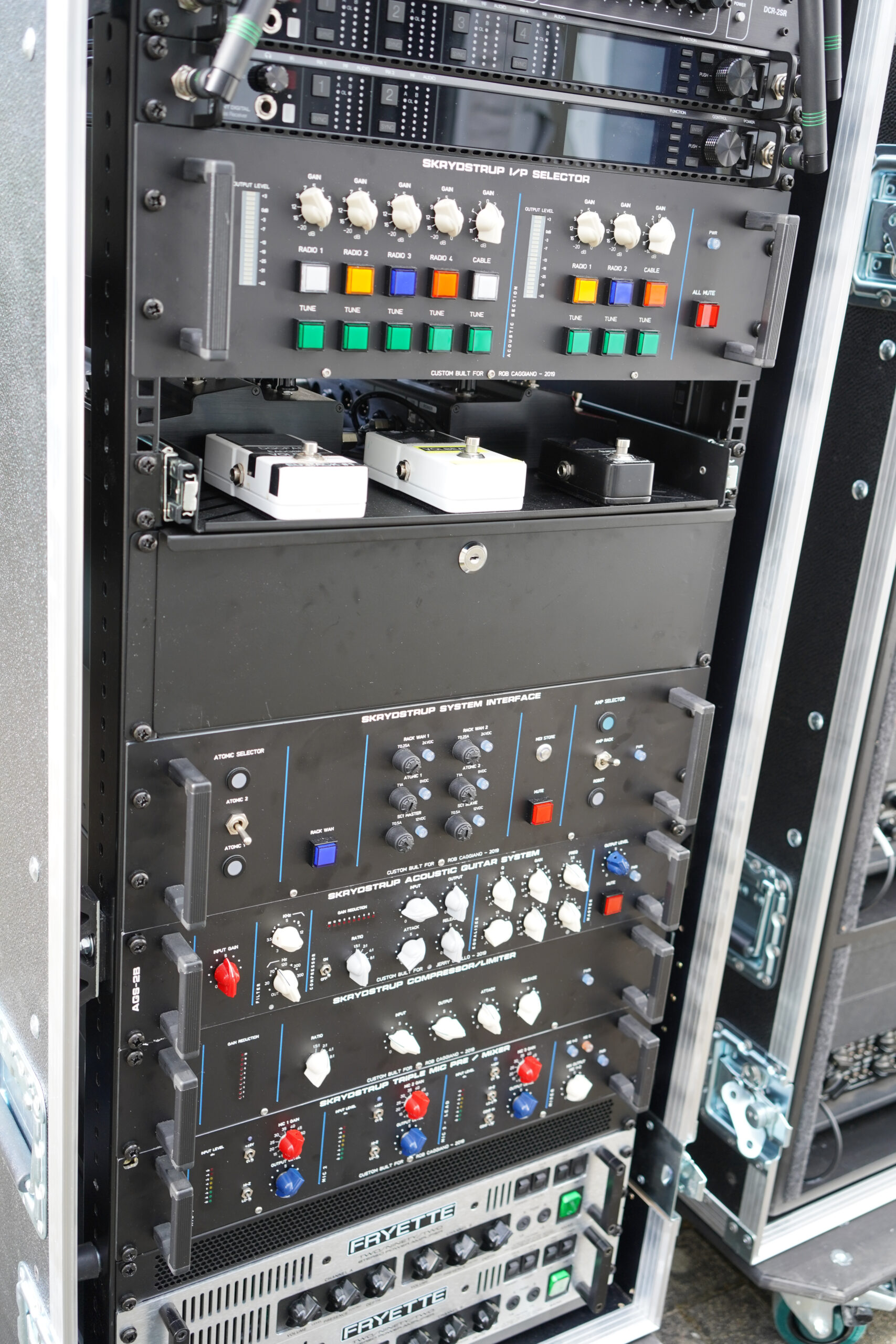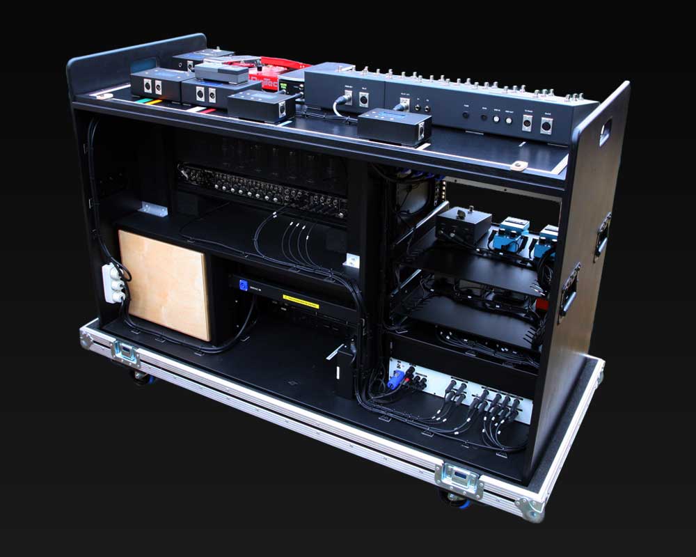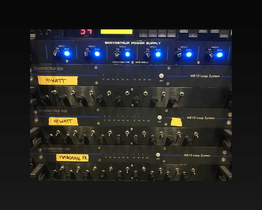 Rob Caggiano asked me to build his touring rig for Volbeat’s world tour in 2019. It includes Custom Shop (CS) I/P Selector, CS System Interface, CS Amp Selector, CS Compressor/Limiter, CS Triple Mic Pre amp, MR5 Loop System, ACC1 Acoustic Guitar System and SC1 Midi Foot Controller.
