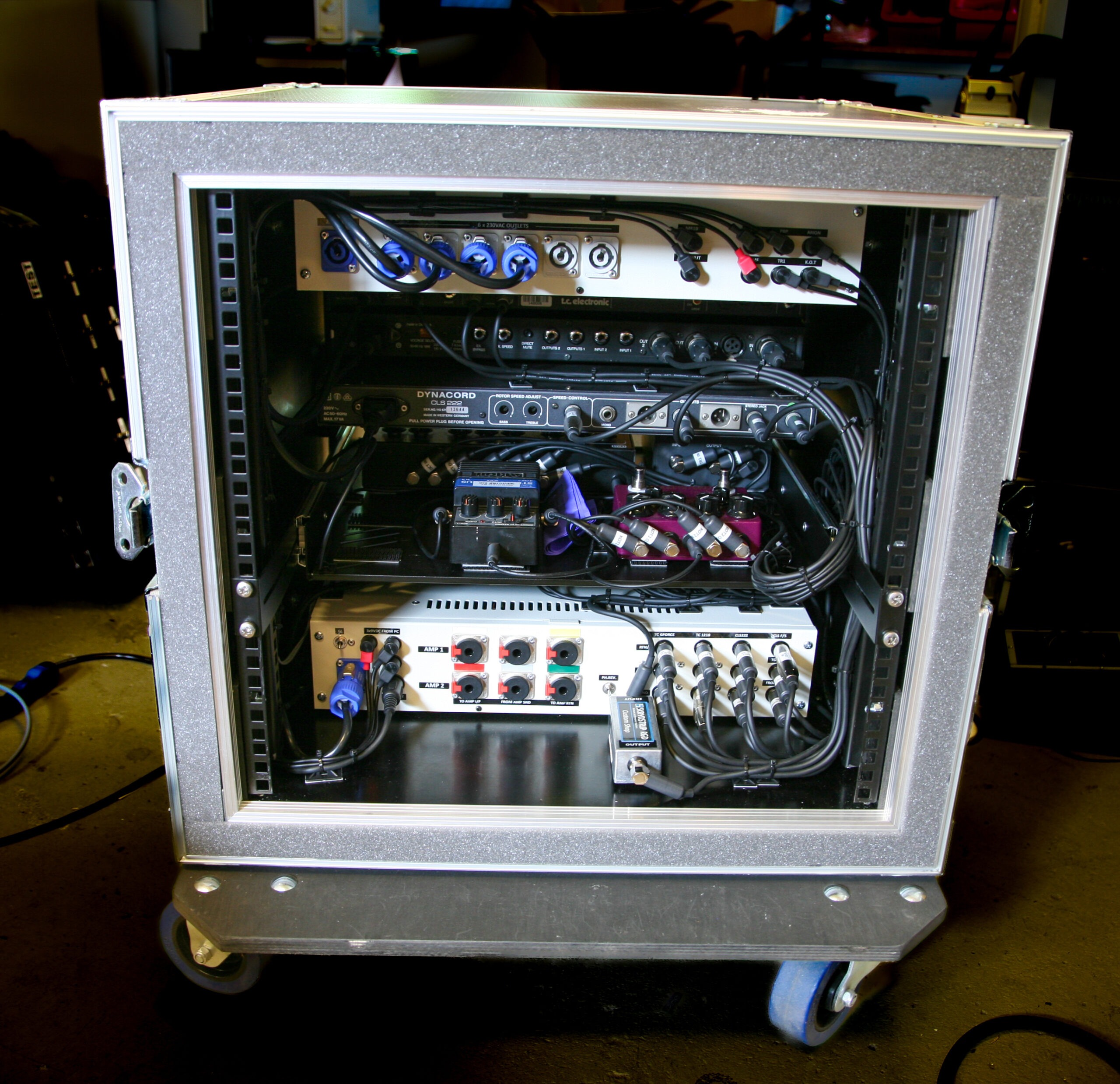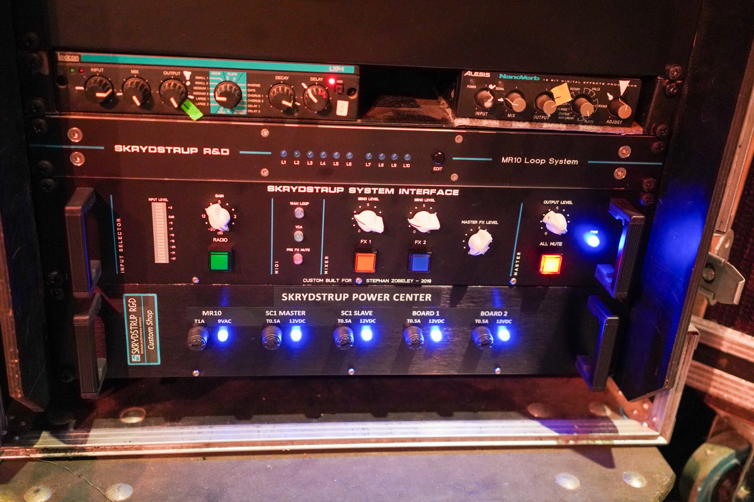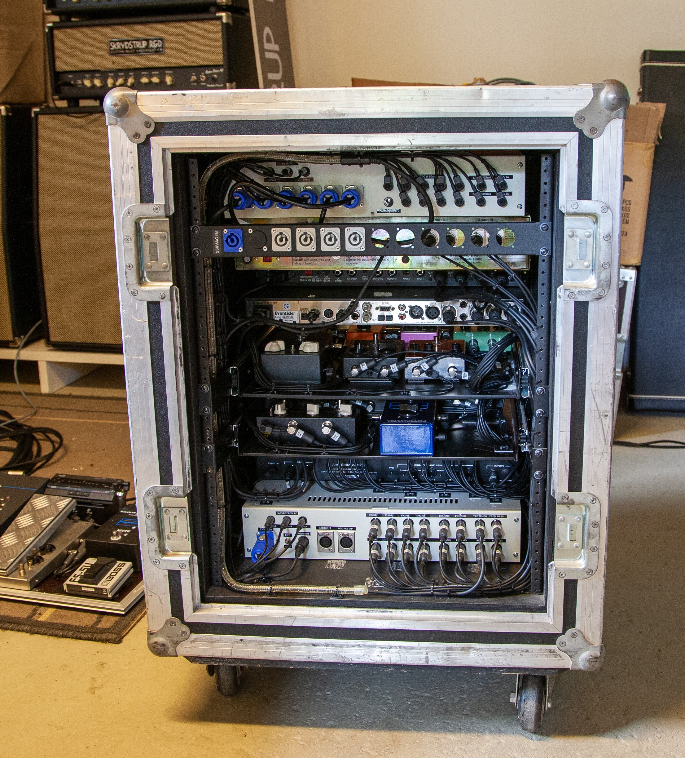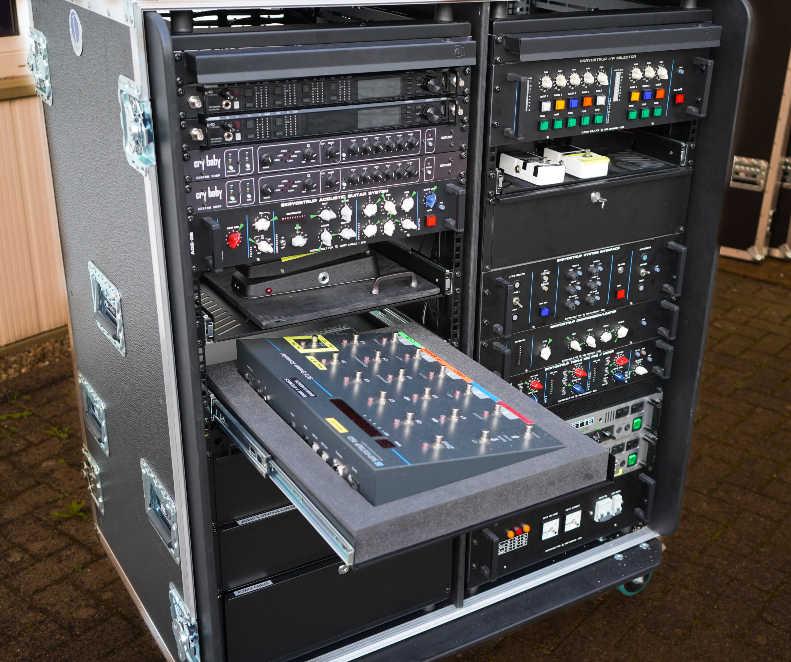 Rob Caggiano asked me to build his touring rig for Volbeat’s world tour in 2019. It includes Custom Shop (CS) I/P Selector, CS System Interface, CS Amp Selector, CS Compressor/Limiter, CS Triple Mic Pre amp, MR5 Loop System, ACC1 Acoustic Guitar System and SC1 Midi Foot Controller.