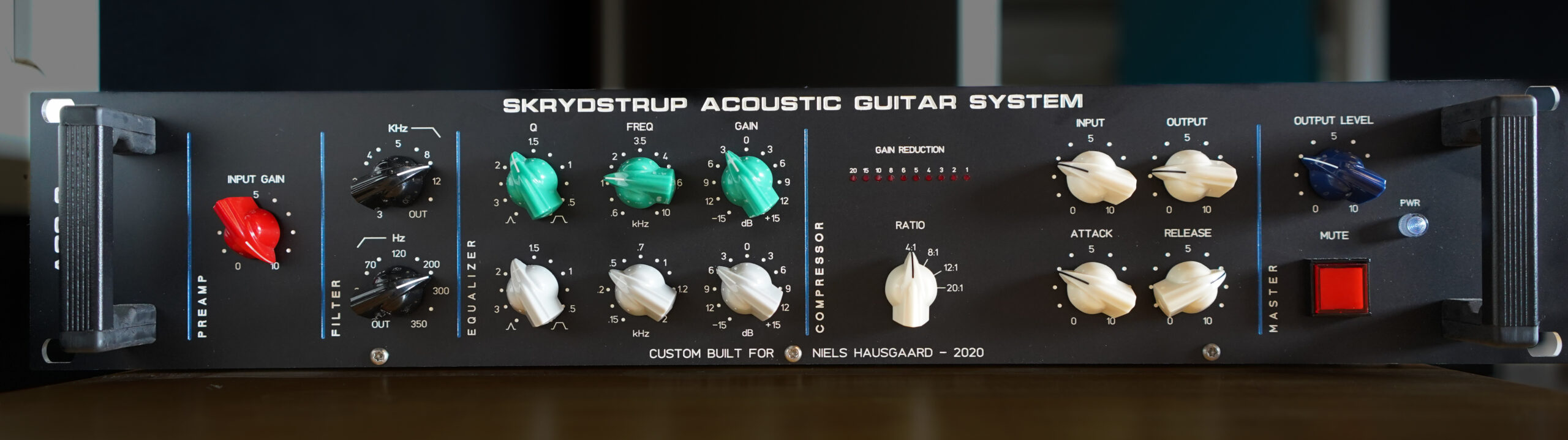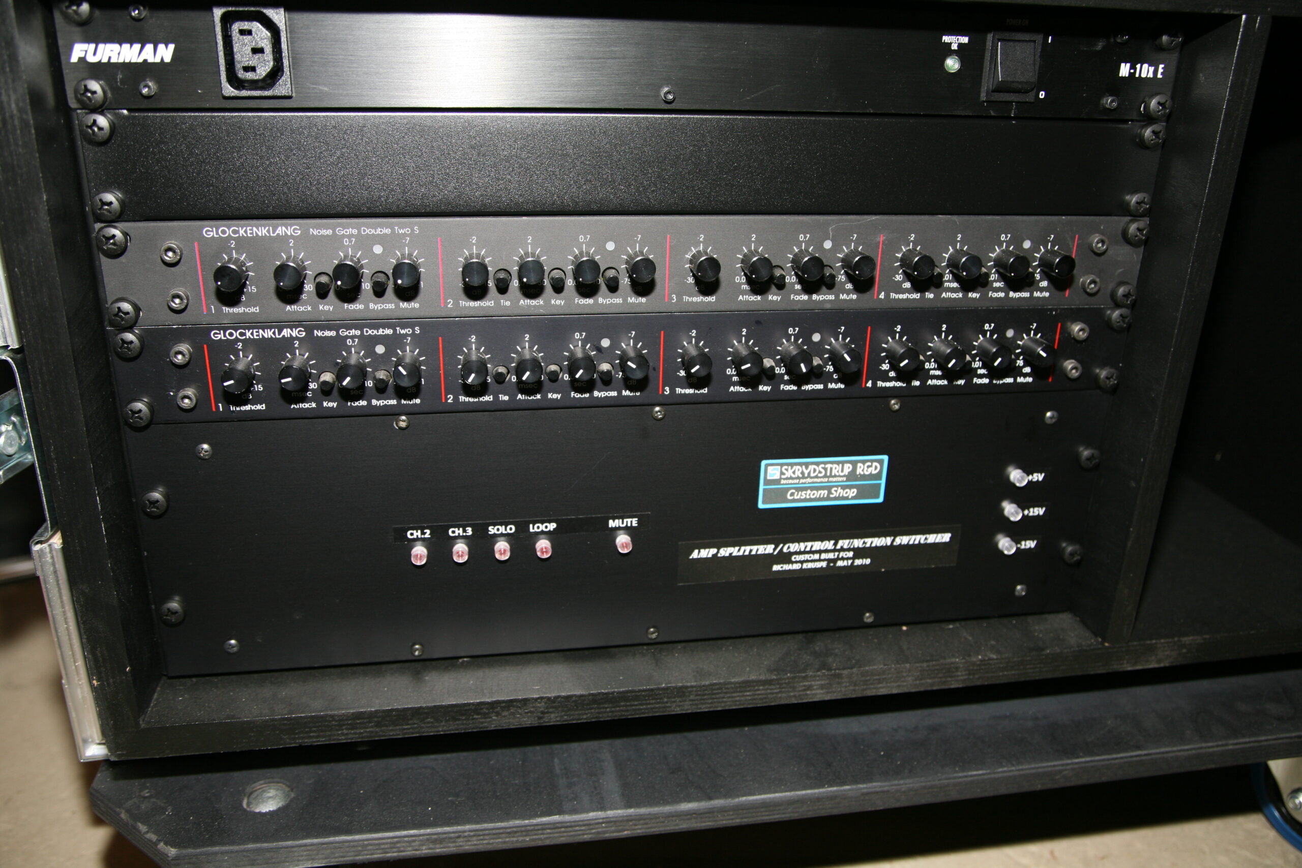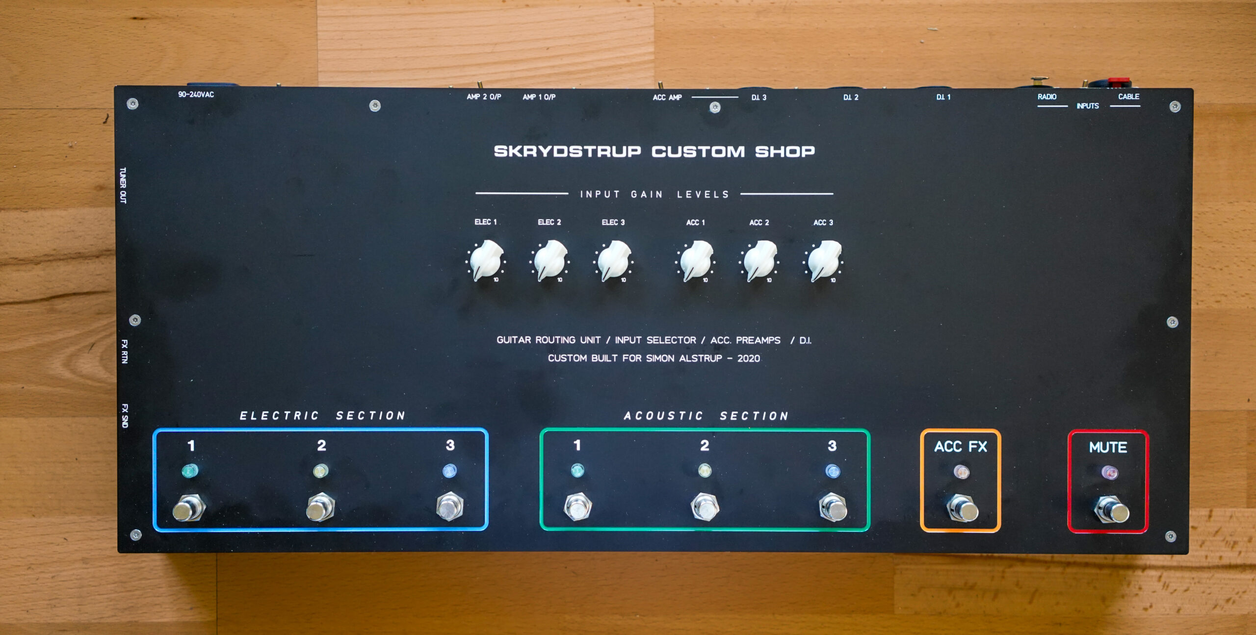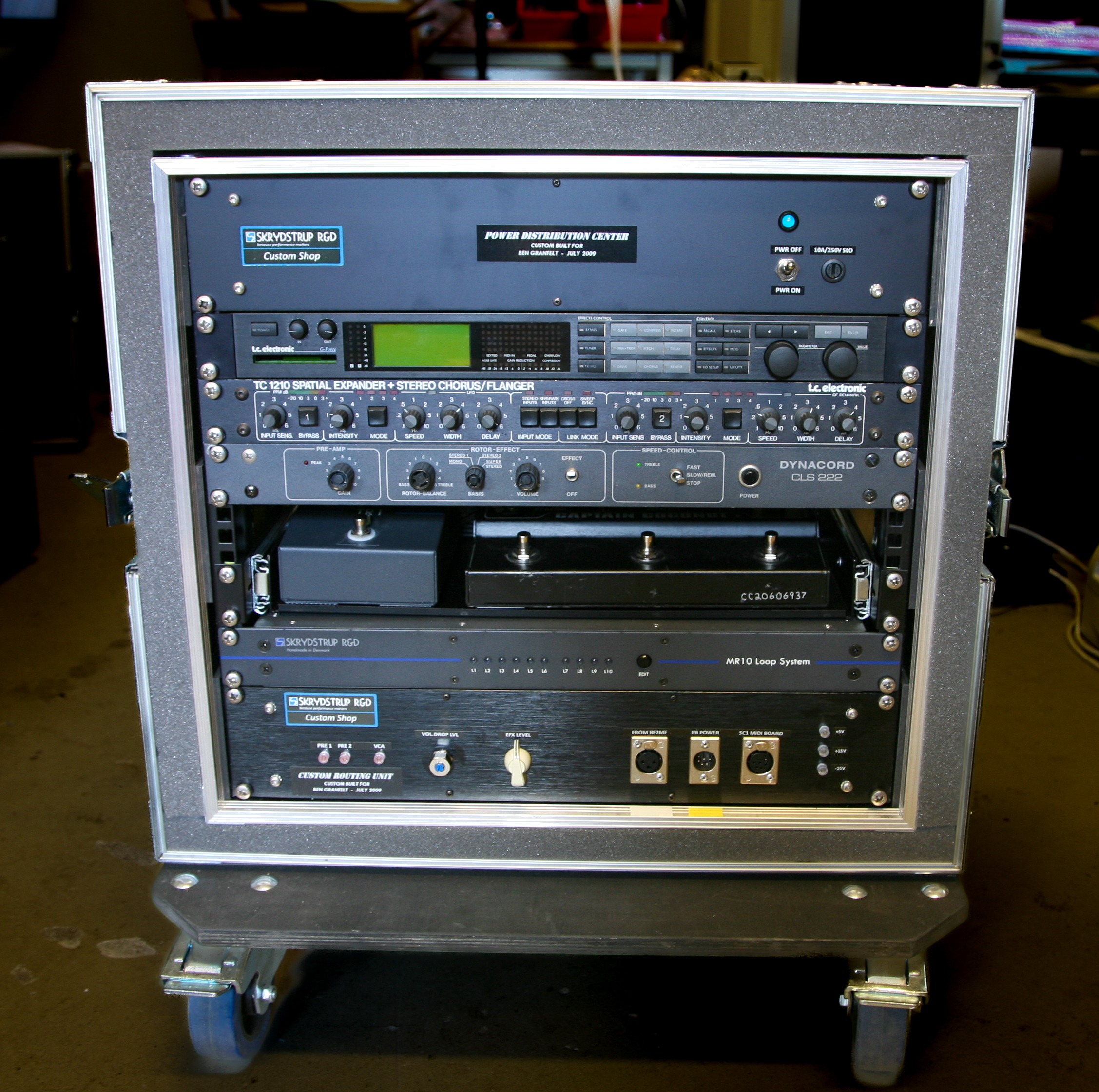 Rob Caggiano asked me to build his touring rig for Volbeat’s world tour in 2019. It includes Custom Shop (CS) I/P Selector, CS System Interface, CS Amp Selector, CS Compressor/Limiter, CS Triple Mic Pre amp, MR5 Loop System, ACC1 Acoustic Guitar System and SC1 Midi Foot Controller.
