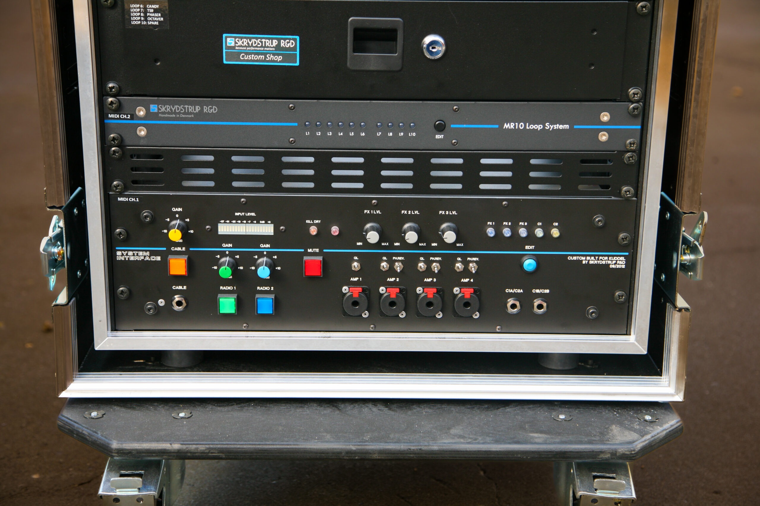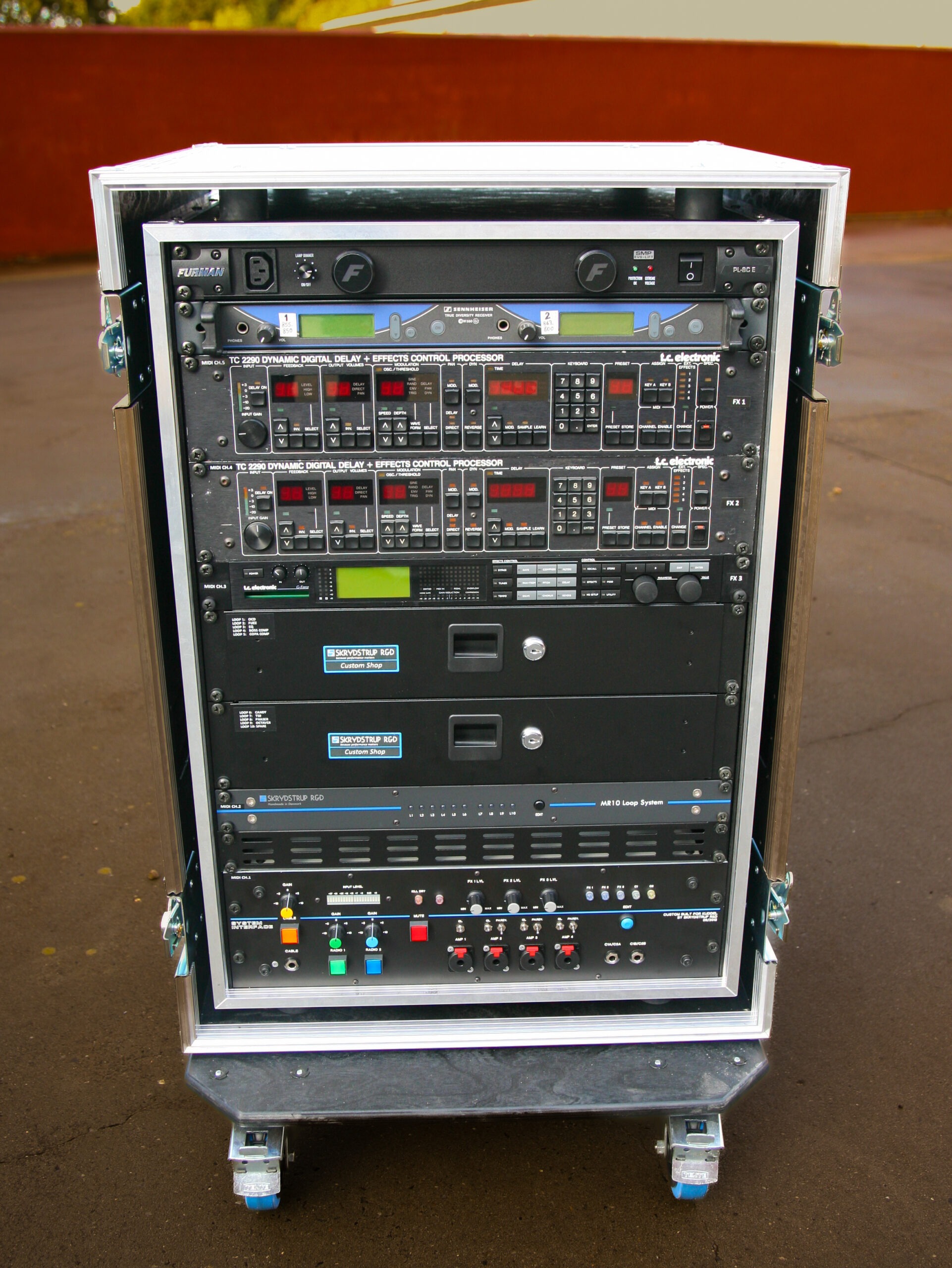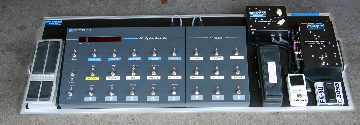 In 2016 David Gilmour changed his system to a Skrydstrup Midi controlled rig for the upcoming World Tour, and he has been using it ever since.