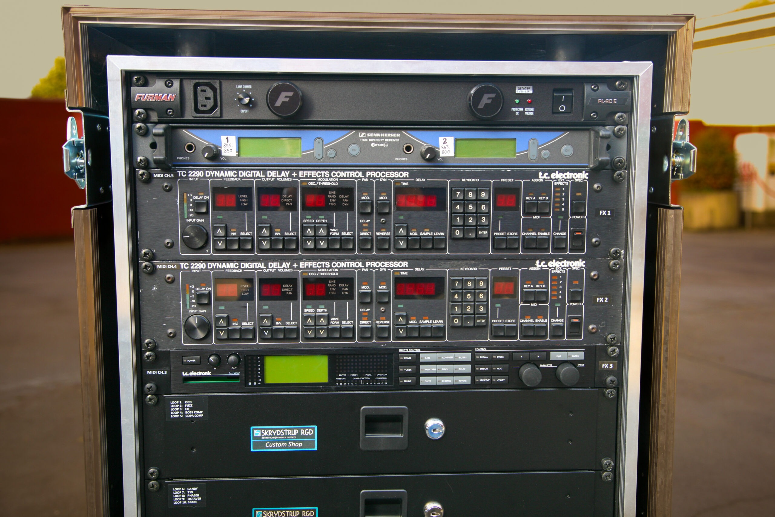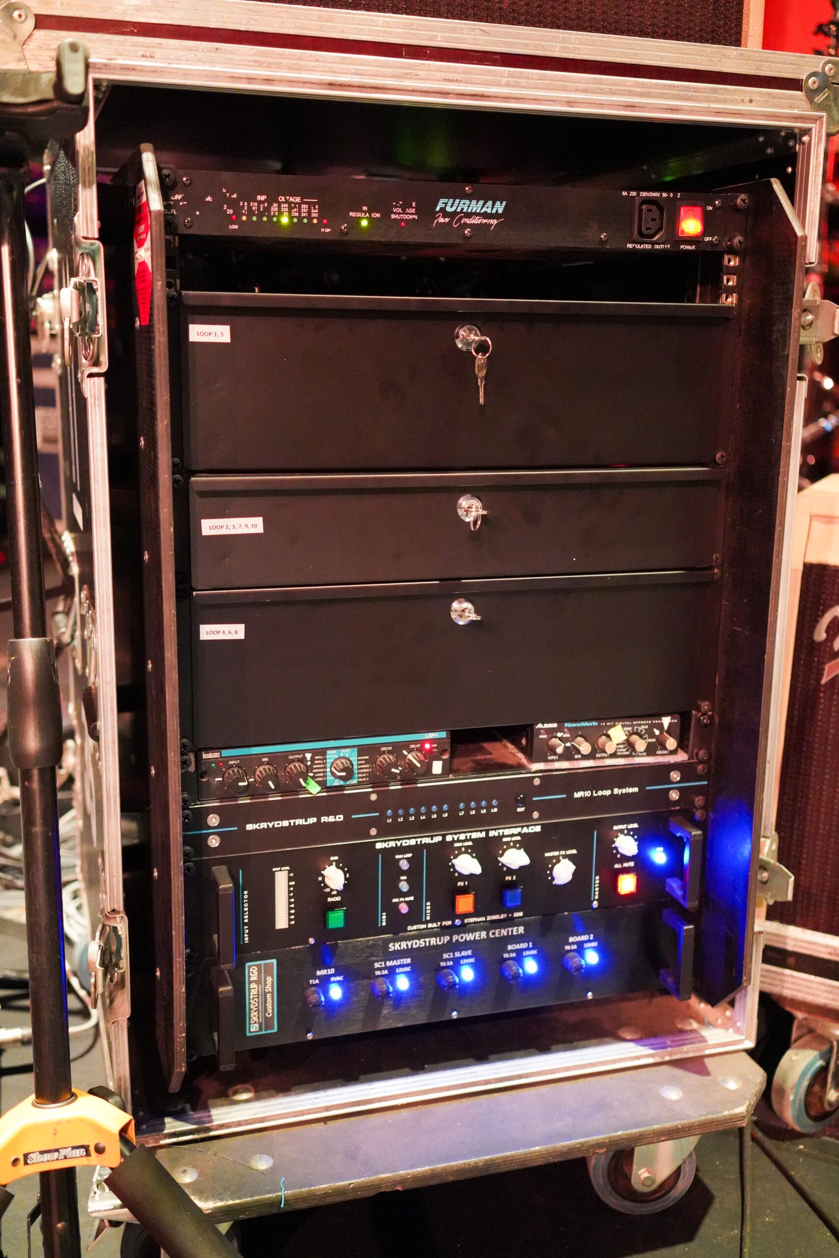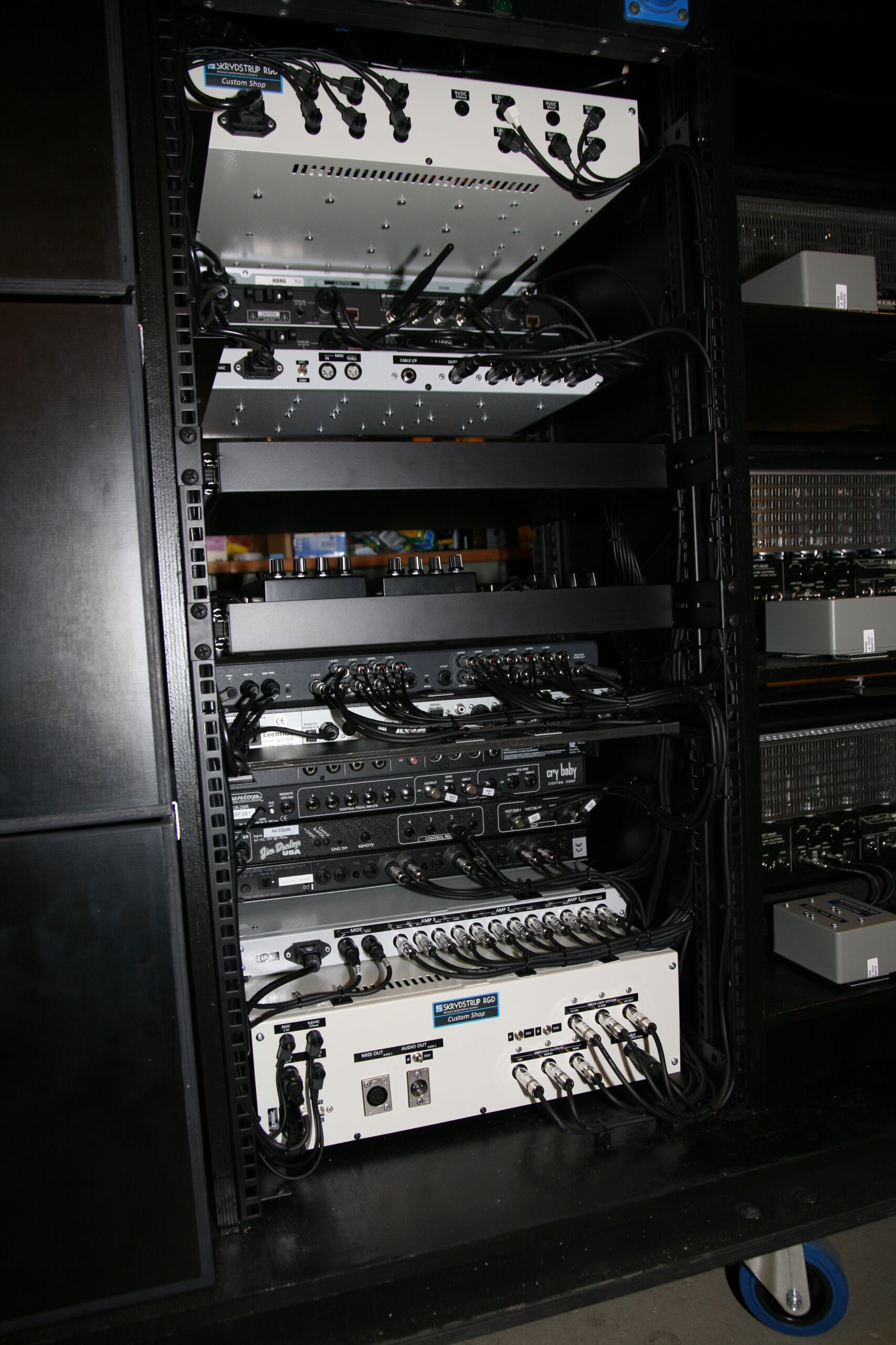In 2016 David Gilmour changed his system to a Skrydstrup Midi controlled rig for the upcoming World Tour, and he has been using it ever since.